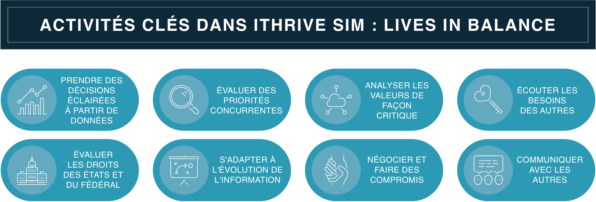 iThrive Sim propose une collection de jeux de rôle adaptés aux besoins de développement des adolescents, les aidant à acquérir des connaissances durables sur le plan social, émotionnel et scolaire. Les adolescents possèdent un profil d'apprentissage particulier, leur cerveau subissant des changements développementaux importants. Des recherches indiquent que le fait de leur offrir des expériences où ils peuvent librement explorer, exprimer et mettre en œuvre leurs points forts contribue à leur bien-être. iThrive Sim sert de catalyseur à ces expériences interactives axées sur la découverte.